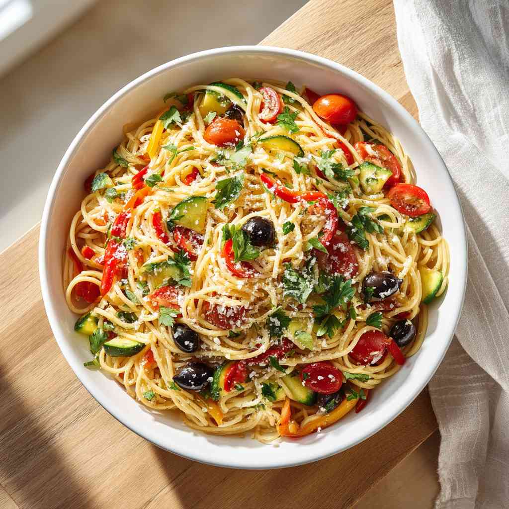 Bold, refreshing California Spaghetti Salad combines vibrant vegetables with tender pasta in a zesty Italian dressing that will leave you craving more.